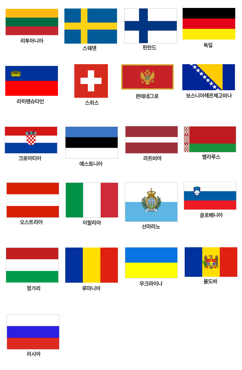 ㆍ북유럽 : 스웨덴, 노르웨이, 덴마크, 핀란드, 아이슬란드 등