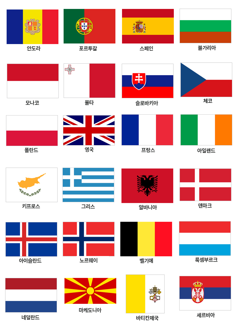 ㆍ남유럽 : 이탈리아, 스페인, 포르투갈, 그리스, 말타 등