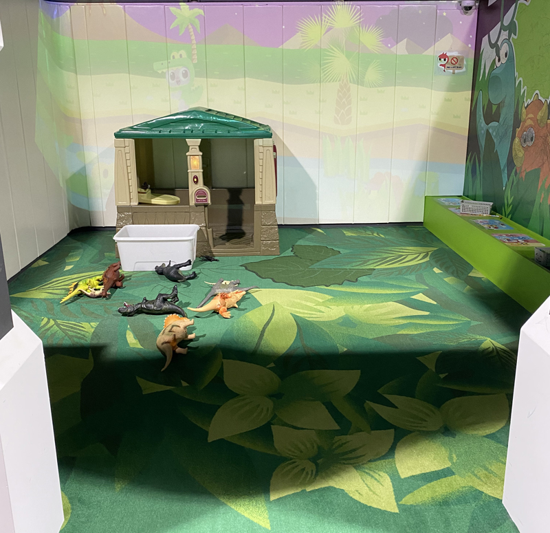 여긴 공룡 인형들과 그림 그리며 놀 수 있는 공간이에요