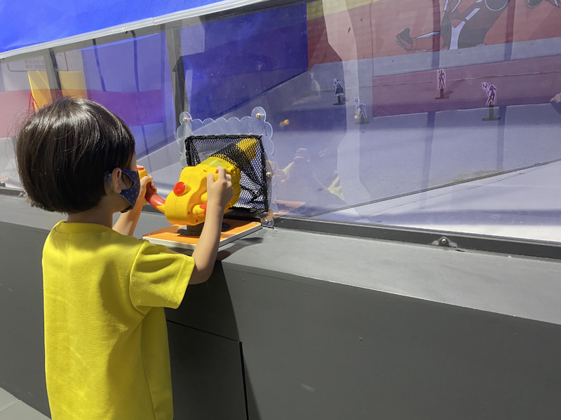 작은 공들이 나와 표적을 맞추는 게임이에요. 아이가 굉장히 재밌어했답니다.